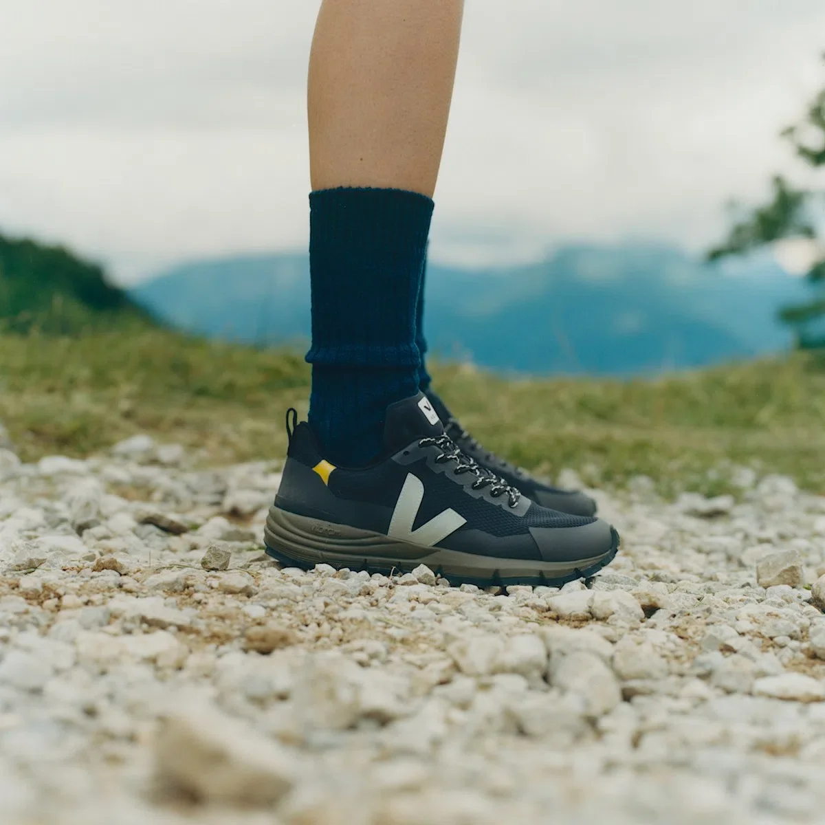 • The Alveomesh is a technical fabric made out exclusively of recycled polyester. It brings breathability, flexibility and lightness to the shoe.