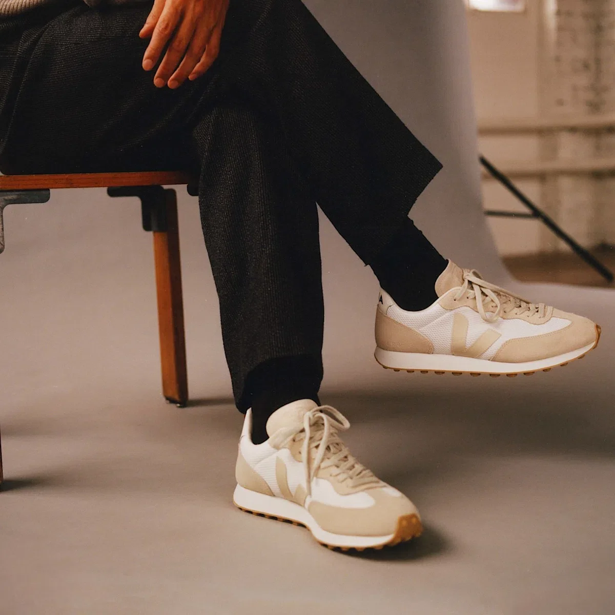 Upper: Alveomesh (100% recycled polyester)Panels: Suede and LeatherInsole: Amazonian rubber (10%), bio-based E.V.A. (38%, including 31% sugarcane), recycled