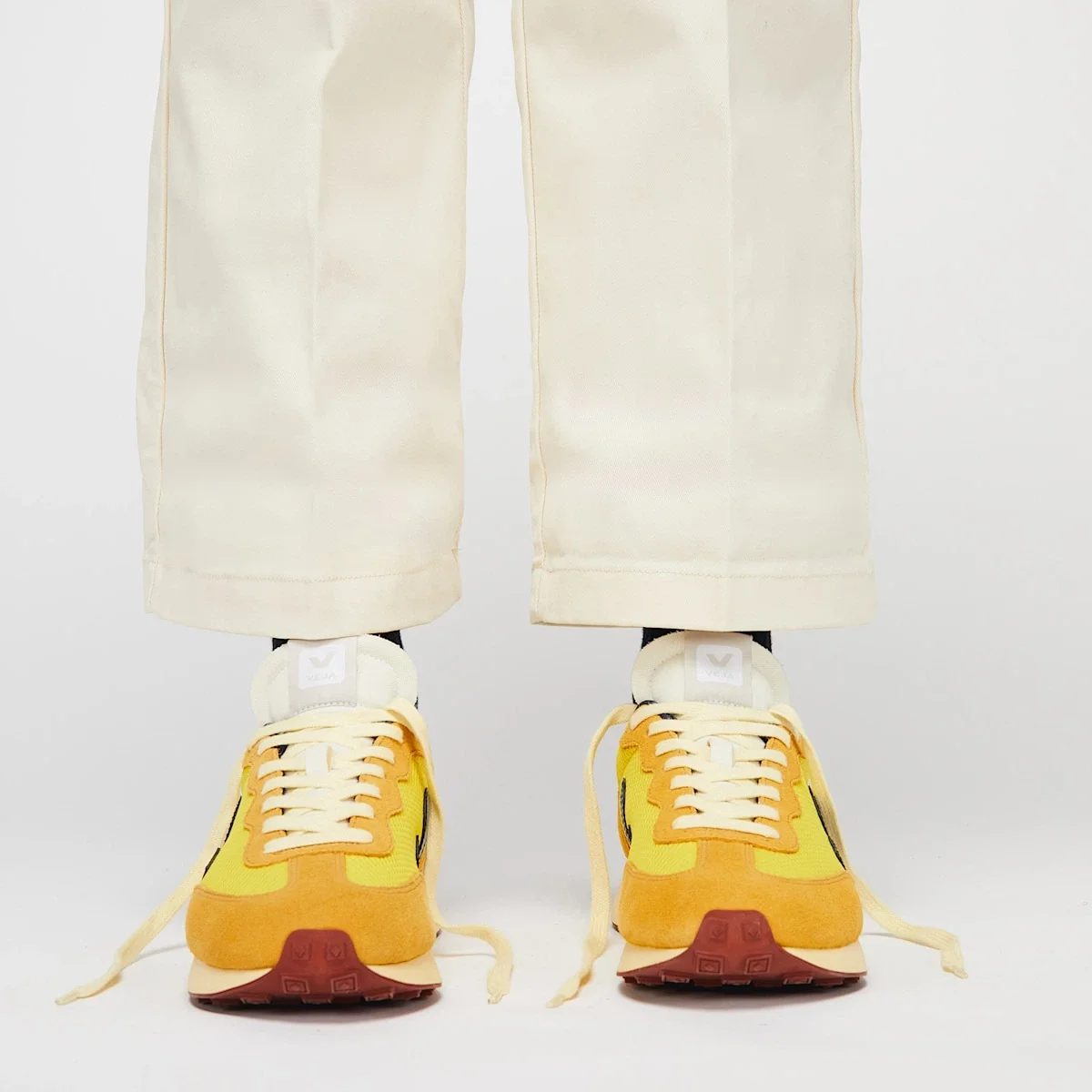 Upper: Alveomesh (100% recycled polyester)Panels: Suede and LeatherInsole: Amazonian rubber (10%), bio-based E.V.A. (42%, including 33% sugar cane), recycled