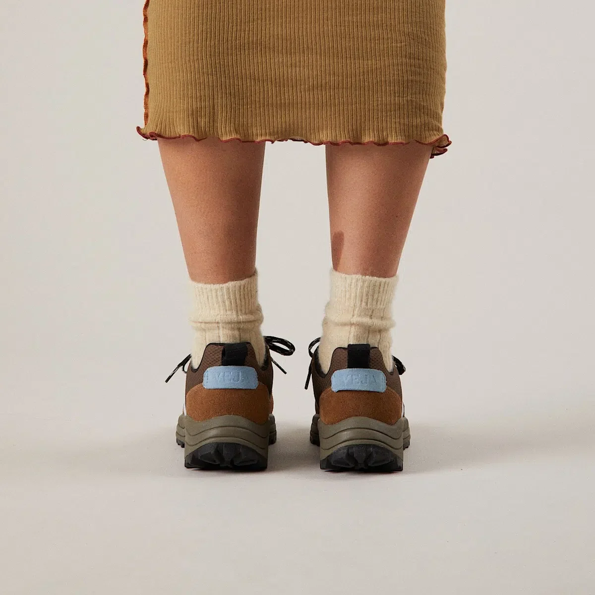 Upper: Alveomesh (100% recycled polyester)Panels: SuedeInsole: Bio-based E.V.A. (70%, including 56% sugarcane), recycled polyester (13%) and others