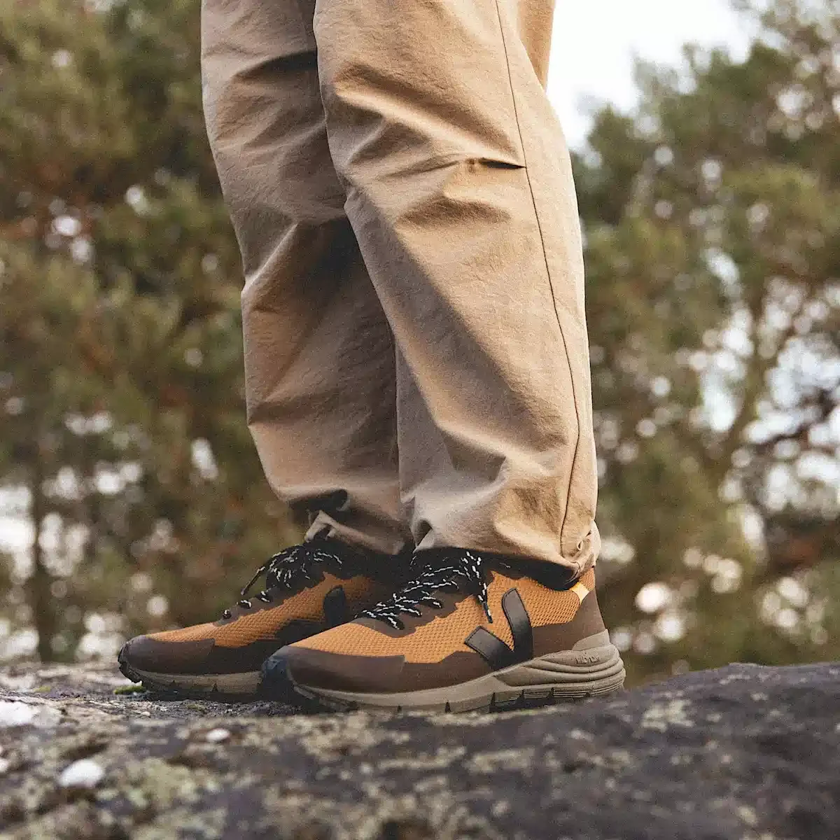 Outsole: Amazonian rubber (30%), mineral silica (25%), synthetic rubber (24%) and others (21%). Made with Vibram